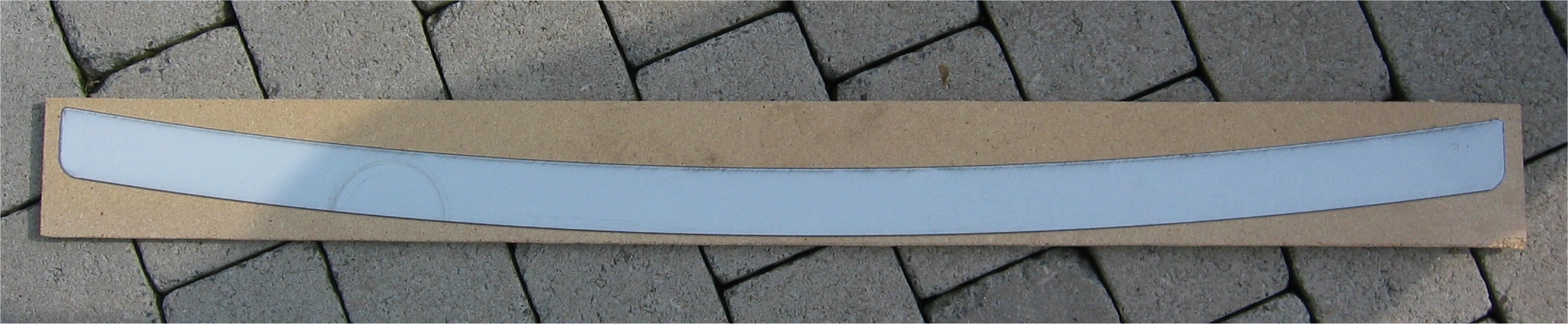 Ich befestige das(die) V2A-Schutzblech(e) mit Klebeband auf einer 12mm starken Spanplatte, so dass das(die) Schutzblech(e) ohne erhebliche Gewalteinwirkung nicht verbogen werden kann(können). siehe Foto Das ganze wird anschließend noch mit Packpapier umwickelt.